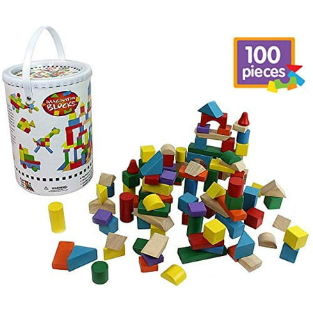 Right Track Toys Wooden Blocks 100 Pc Wood Building Block Set With Container Rainbow Colored 100 Real Wood In 7 Colors And 14 Shapes Walmart Canada